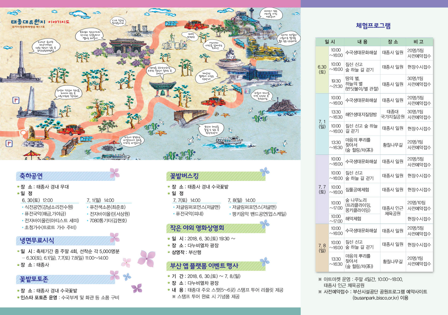 한편, 부산시설공단은 향후 이번 체험프로그램 행사에 참여하지 못한 시민들에게 7월~9월까지 여름철 방학기간 및 주말을 활용하여 태종대유원지 연계 지역 도보길 탐방체험 프로그램을 지속적으로 운영할 예정이다.