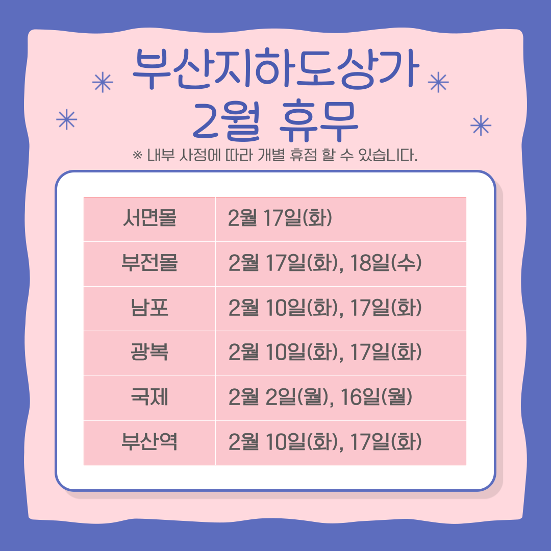 [ 부산 지하도상가 2월 휴무일 안내 ]